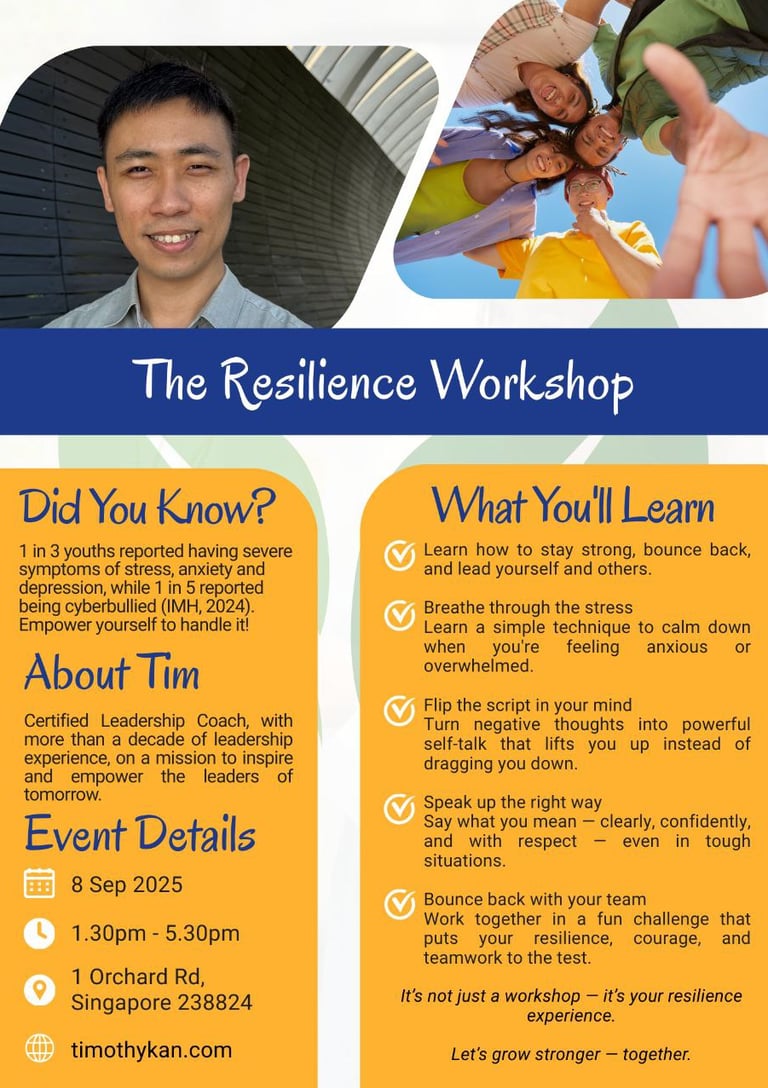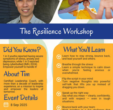 If you’re connected to schools, youth organisations, or communities that care about preparing young leaders for the future, let’s connect and explore how we can bring The Resilience Workshop to them.